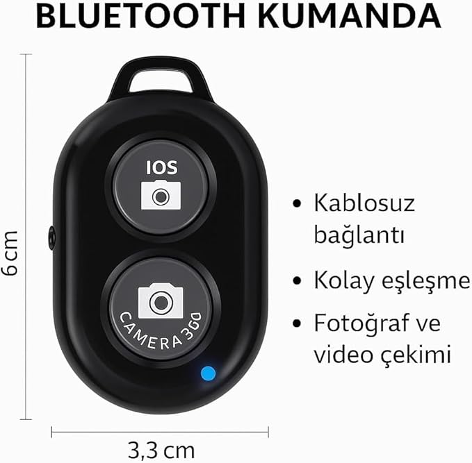 Bluetooth Uzaktan Kumanda – iOS ve Android uyumlu; dokunmadan fotoğraf/video çekimi yapın. Yemek ve ürün çekimlerinde büyük kolaylık sağlar.