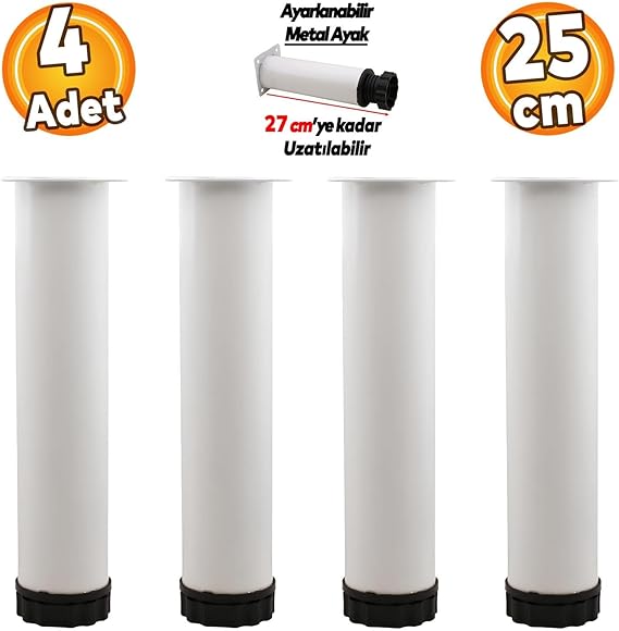 Ayarlanabilir Mobilya Kanepe Baza Koltuk Metal Destek Yükseltici Beyaz Ayağı Ayakları 25 cm 4 Adet
