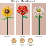 Ayçiçeği Mini Tuğla Çiçek Buketi Yapı Seti, Yapay Çiçekler Yapı Taşları Setleri, Ev Dekorasyonu, Yetişkinler için 568 Adet Botanik Koleksiyonu Hediye (Ayçiçeği/Gül/Küçük Papatya)