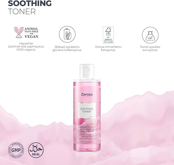 Aydınlatıcı & Nemlendirici Pembe Tonik Arbutin & Hyaluronic Asit & Calendula 200 ml