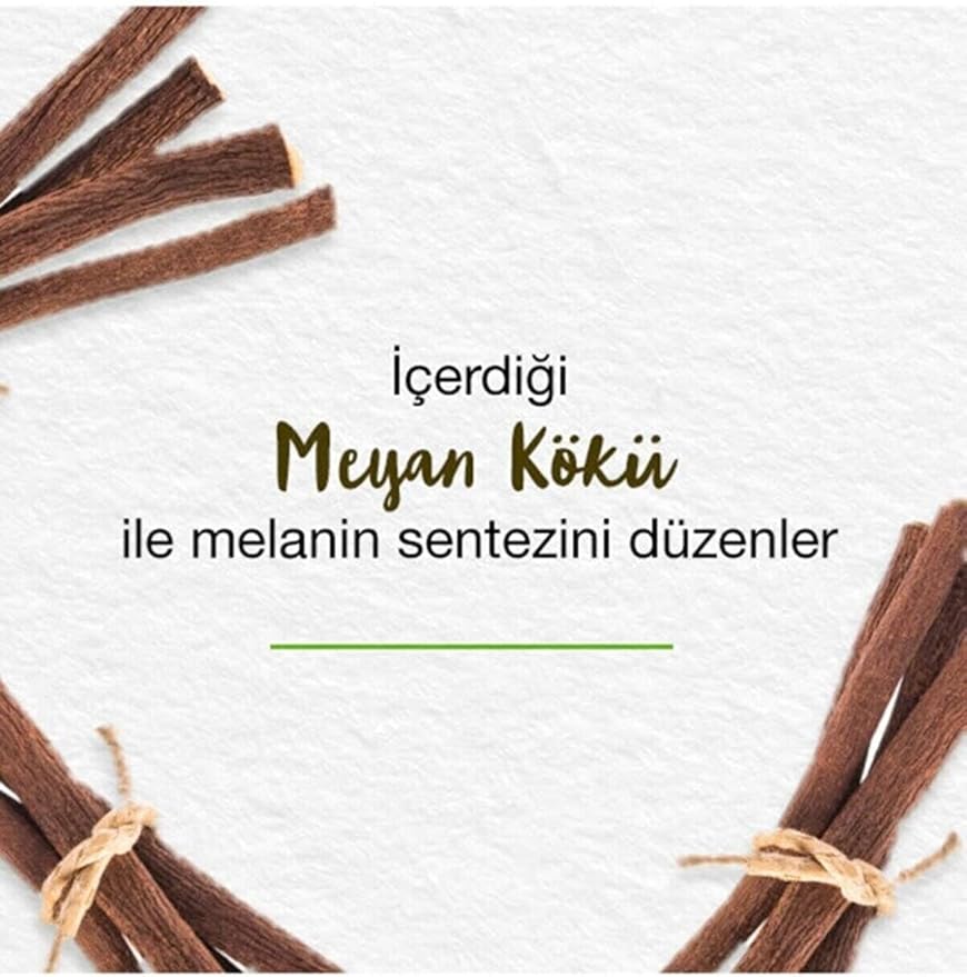 İçerdiği Safran ve Meyan Kökü melanin sentezinin düzenlenmesine yardımcı olur.