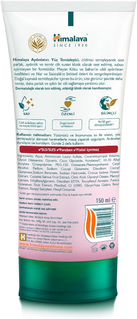 Aydınlatıcı Yüz Temizleyici 150 ml | Meyan Kökü, Safran, Salatalık, Nar | Parabensiz, Sabun İçermez | Tüm Ciltler