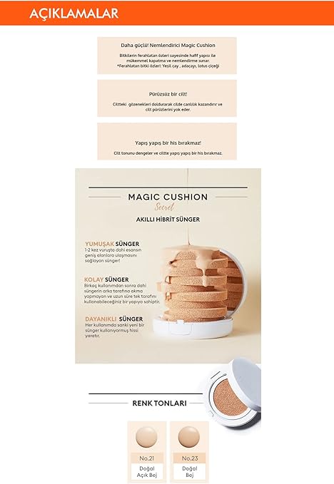 Aydınlık Görünüm Sunan SPF50+ PA+++ Cushion Fondöten 15g Magic Cushion Moist Up no.21 (İç Yedek)