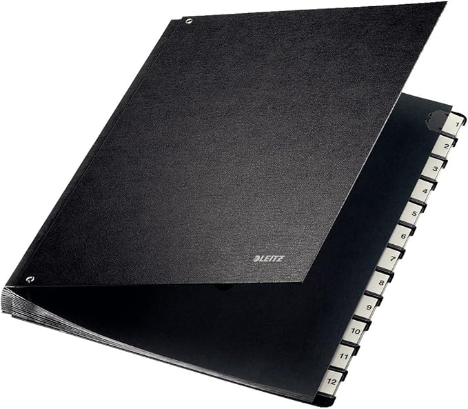 Ayırıcı klasör, A4, 12 gözlü, 12 plastik rakam bandı, 6 görüş deliği, siyah sert karton, siyah, 58120095