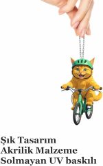 Ayna Süsü Bisikletli Kedi, Pleksi Malzeme, UV Baskılı 003