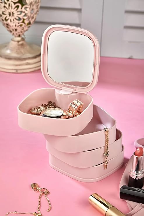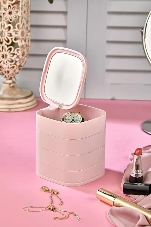 Aynalı 4 Katlı Kare Takı ve Makyaj Organizeri