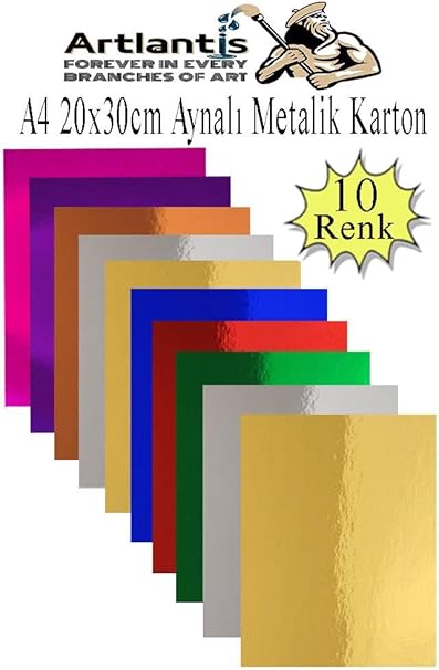 Aynalı Fon Kartonu A4 10 Renk 20X30 cm 1 Paket Okul Sınıf Dekoratif Pırıltılı Folyo Kağıt