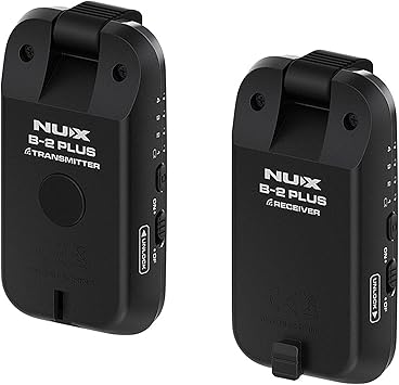 Teslimat kapsamı: Nux B-2 Plus 2.4 GHz kablosuz gitar sistemi, kablosuz adaptör, pil ömrü maks. 7 saat – uzun menzil – 32 bit/ 48 KHz Hi-Res ses kalitesi – jak – Renk: Siyah
