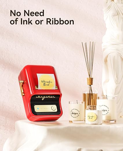 B21 Etiket Makinesi Mürekkepsiz Bluetooth Etiket Yazıcısı, Küçük İşletmeler için 2 İnç Taşınabilir Termal Yazıcı, Adres, Logo, Giyim, Posta, Mumlar, Takı, Hediye için Etiket Yazıcısı, Kırmızı