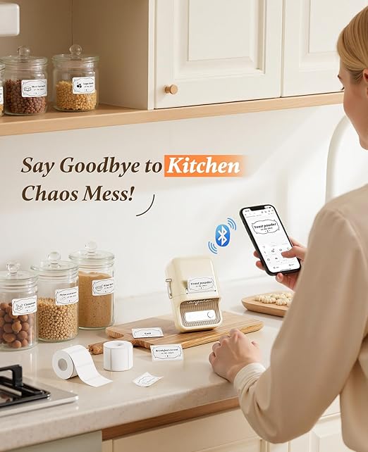 B21 etiket yazıcısı, 1 rulo başlangıç bandı, Bluetooth kendinden yapışkanlı etiketleme cihazı, yazdırma cihazı, baskı boyutu 20 – 50 mm, iOS ve Android ile uyumlu, ev, ofis için (bej)