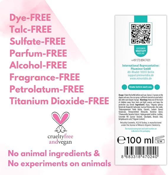VEGAN AND CRUENTLY FREE: Minoris Baby ürünleri kuruluşundan bu yana hiçbir hayvan testi yapılmadan geliştirilmiştir. Ayrıca formülasyonunda hayvansal kaynaklı herhangi bir içerik kullanılmamıştır.