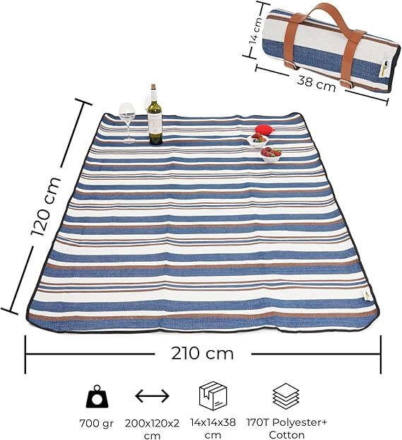 Çeşitli kullanım alanları: Esnek Piknik örtüsü sadece pikniklerde değil, plajda, kampta, bahçede veya açık hava etkinliklerinde de kullanılabilir. Çok amaçlı kullanımıyla pratik ve kullanışlı bir dış mekan ekipmanıdır.