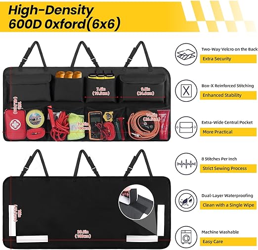 [ Yönlü Kullanım]: Aracınızı düzenli ve düzenli tutmak için arabanızda, SUV’unuzda, kamyonunuzda veya minibüsünüzde kullanın. Acil durum ekipmanları, aletler, atıştırmalıklar, hap kutuları, tabletler, haritalar ve daha fazlası için mükldir.