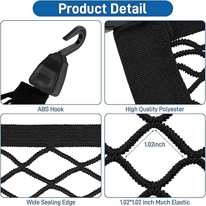 【Yüksek kaliteli malzeme】 Araç filesi bagaj bölmesi, uzun ömürlü yüksek kaliteli lateks ve polipropilen malzemelerden oluşur. Sabit kanca daha kalın, daha güçlü ve uzun ömürlü sert ve yüksek kaliteli ABS plastikten oluşur.