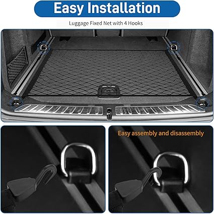 【Kolay kurulum】 Bagaj filesi, montajı ve sökülmesi kolay 4 plastik toka ile donatılmıştır, ek alet gerektirmez ve sadece bir kişi tarafından kolayca monte edilebilir, sökülebilir ve monte edilebilir.