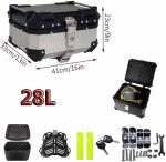 Bagaj Üstü Kasa Alüminyum Bagaj Tur Paketi Üst Kutu Su Geçirmez Saklama Taşıyıcı Kılıf Motosiklet için Moped Arka Kılıf 28L 36L 45L 55L 65L 80L 100L (Siyah, 28L)