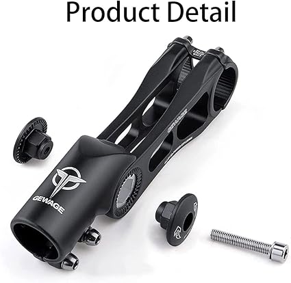 【Kolay Kurulum】-Bisiklet gövdesinin kurulumu kolaydır, bisiklet şaftı direğini orijinal ön çatal sapına bağlamanız yeterlidir. Dört cıvatalı kelepçe, çubuğu yerinde tutar. Kart yuvası ve gidon arasındaki sürtünmeyi artırmak, sürüş sırasında titreşimin ve kontrol kaybının etkisini etkili bir şekilde önleyebilir.