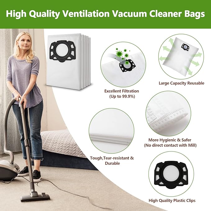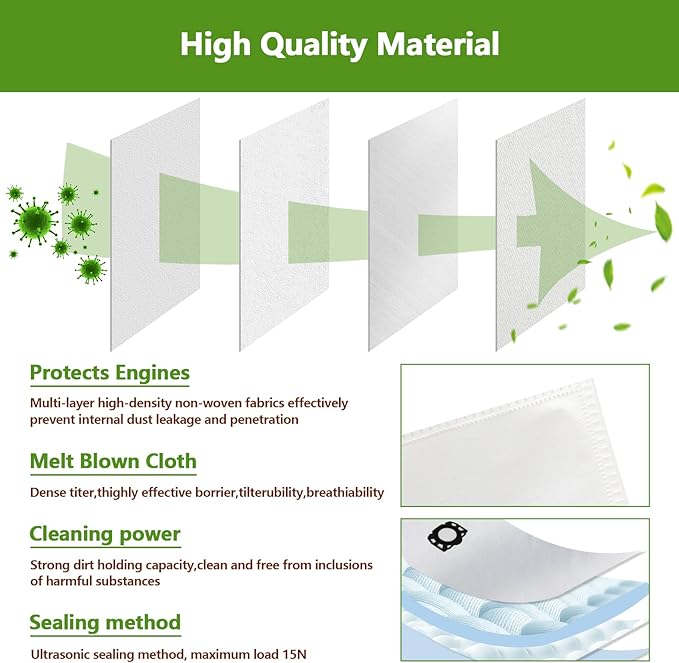 【Yüksek verimli filtre teknolojisi】WD5 birinci sınıf filtre torbası 2 katmanlı mikro filtreleme kağıdından ve çevre dostu malzemeden oluşur, kir ve toz parçacıklarının (polen ve akarlar) %99,99’unu etkili bir şekilde filtreleyebilir. Karcher temizleme performansı için filtrelerin korunması için her 2 ila 3 ayda bir değiştirin.