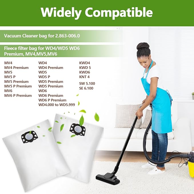 【Mükemmel uyumluluk】Karcher WD4 elektrikli süpürge torbası, Karcher WD4, WD5, WD6, KWD4, KWD5, KWD6, KNT4, MV4, MV5, MV6, WD4.000, WD4.200 ila WD5.800, WD5.999, SW5.100, SE6 modelleri için uygundur. .100, Wet4-, WD5-, WD5 / P.