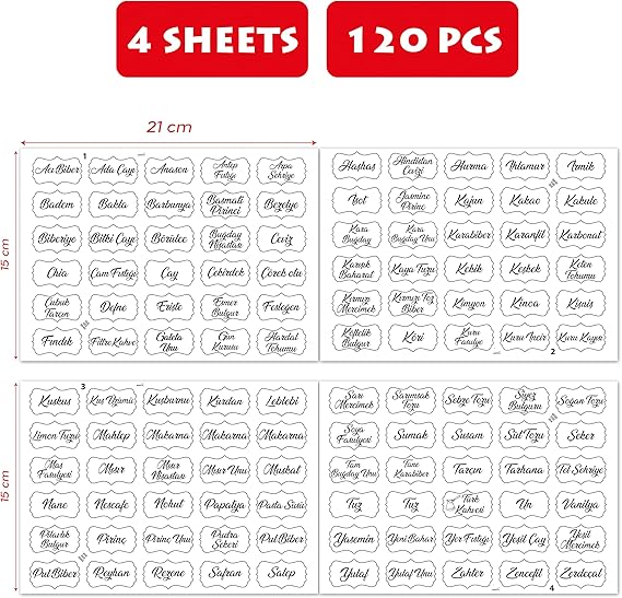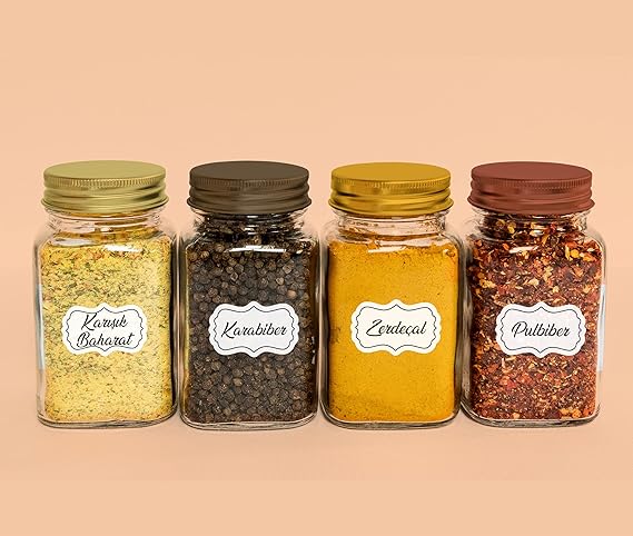 Baharatlık Etiketleri – Kendinden Yapışkanlı – 120 Adet Çıkartma Baharat Etiketleri – Suya Dayanıklı – Beyaz Baharat Kutuları Etiketleri