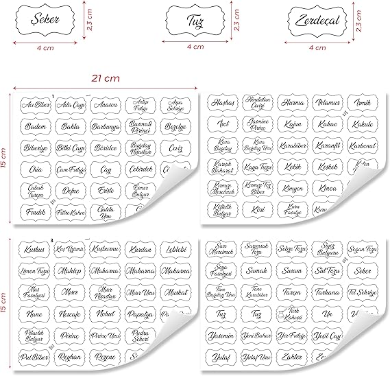 ★ 【YÜKSEK KALİTE ve PRATİK KULLANIM】4 sayfa baharat çıkartmaları mutfağınızı özelleştirmek ve tasarlamak için olağanüstü çıkartmalardır. Alfabetik sıralama ile baharatları kolayca bulabilirsiniz. Ürün tüm popüler baharat çıkartmalarını içermektedir. Uzun süre dayanıklıdır. Okunması kolay yazı tipi vardır. Yüksek kaliteli kağıttan yapılmış çıkartmalar ürün sayfasından kolayca alınabilir. İz bırakmadan yüzeyden çıkarılabilir. Kendinden yapışkanlıdır ve tutkal/bant vs. kullanmaya gerek yoktur.