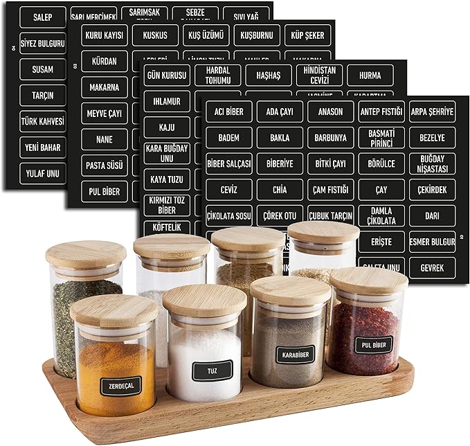 Mutfağınızı düzenleyin Mutfağınızı modern, minimali yüksek kaliteli ve pratik bir şekilde organize edin, günlük hayatınızı kolaylaştırın. Mutfağınız artık baharat etiketlerimizle daha iyi organize oluyor! Baharat kavanozlarını dekore etmek için yaratıcılığınıza katkıda bulunur.
