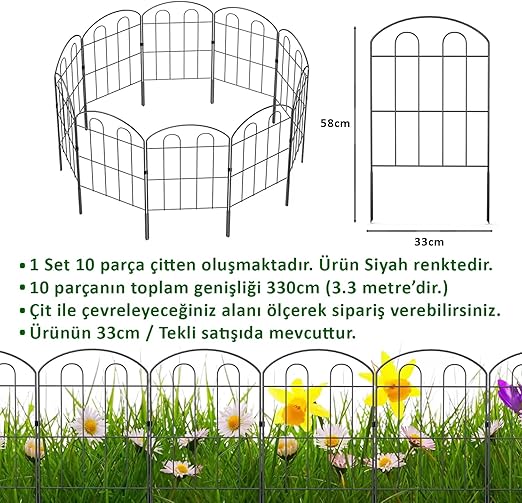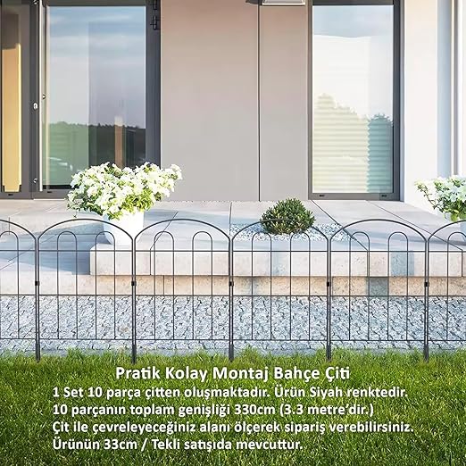 BAHÇE ÇİTİ 10’LU SET 330CM MODEL – 1 SİYAH HOBİ BAHÇESİ, ÇİÇEK, SEBZE, MİNİ BAHÇE