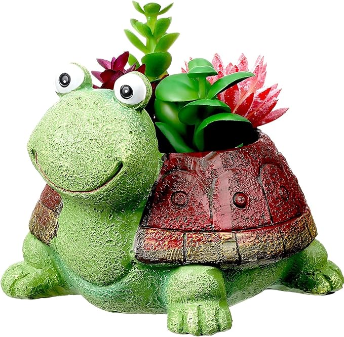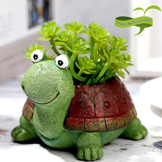 Eşsiz Hayvan Saksısı – Saksı, sevimli gülümseyen bir yüze ve sulu bitki süslemelerine sahip sevimli bir kaplumbağa şeklindedir. Onu her gördüğünüzde, gün boyu iyi ve enerji dolu hissedeceksiniz. Bitkiler, sukulentler, kaktüsler, bonsai ve yapay bitkiler gibi bitkiler için ideal yeni ev.