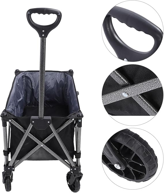 bahçe, kamp ve alışveriş, ağır hizmet, büyük kapasite, siyah için tekerlekler, açık hava bakkal vagonu, polyester çelik ile katlanır vagon arabası