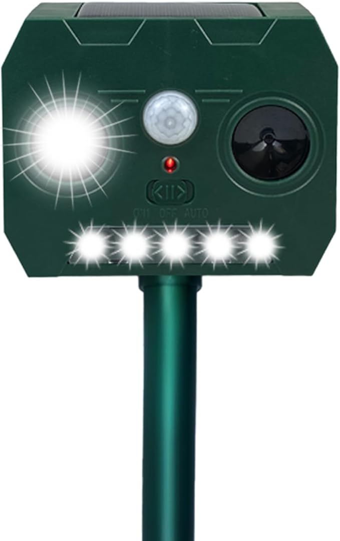 Bahçenizi koruyun – Bahçe için bu kedi kovucu hayvanları bahçenizden uzak tutar. Pasif kızılötesi sensör (PIR) hareketleri algılar ve ultrasonik hoparlörü etkinleştirir ve sincapları, geyikleri, rakunları, tavşanları, kedileri, köpekleri, kokarcaları ve tilkileri çiftliğinizden veya bahçenizden korkutan sesler verir