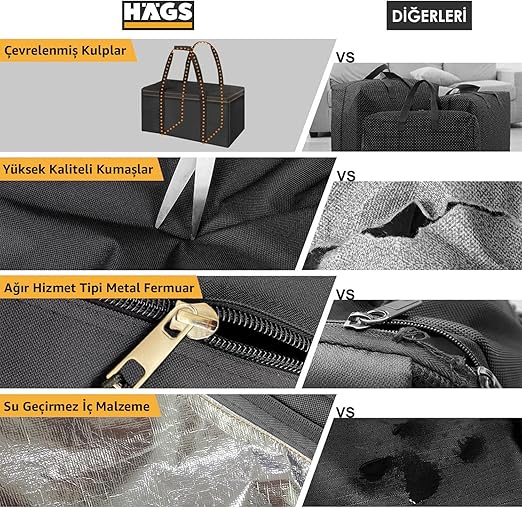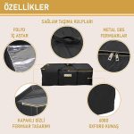 ✅ ÇOK AMAÇLI KULLANIM: Saklama hurçlarımız kıyafetleri, yatak takımlarını, mobilya minderlerini, Yorgan, Nevresim, Noel ağaçlarını ve diğer birçok eşyayı saklamak için kullanılabilir, eşyalarınızı tozdan, nemden, güneş ışınlarından ve diğer zararlı maddelerden korur. Hurç aynı zamanda, Organizer, düzenleyici olarak çok işlevsel, ev içi dağınıklık toparlayıcı olarak da işlev görür. Öneri: Lütfen fırtınalar sırasında açık havada depolamaktan kaçının. Hurç Çanta Hacimleri ve ölçüleri: 725 Litre: 175 x 75 x 55 cm’dir, 3,2Kg.