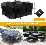 ✅ FARKLI BOYUT SEÇENEKLERİ: Lütfen satın almadan önce mobilyalarınızı ölçünüz! Bahçe mobilyanızı en iyi kapatan örtü için lütfen mobilyanızın kapalı hali (sandalyelerini de dahil ederek masanın altına mümkün mertebe iterek bir araya gelmiş hali) ile uzunluğunu, genişliğini ve yüksekliğini ölçüp mobilyanızı kaplayacak en yakın ölçüdeki örtüyü seçiniz.