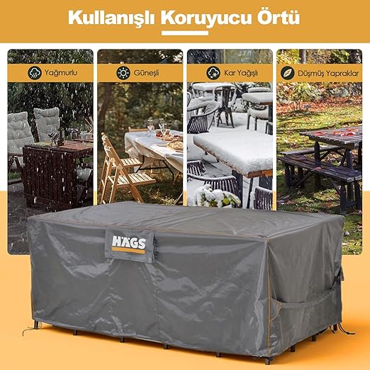 ✅ GELİŞMİŞ YÜKSEK PERFORMANSLI MATERYAL: Haegs Bahçe mobilyası örtüleri, %100 su geçirmez ve Anti-UV özelliğine sahip geliştirilmiş 420D Oxford kumaştan yapılmıştır; Riptop deseni ve arka kaplaması sayesinde, yırtılmaya, çatlamaya ve solmaya karşı yüksek direnç gösterir. Bahçe mobilyalarınız örtünün altında güvende kalır