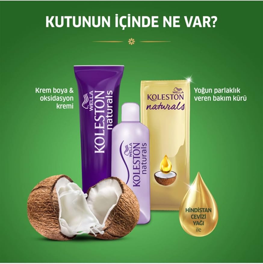 Koleston Naturals’ın, Wella uzmanları tarafından geliştirilen özel sistemi sayesinde, yoğun renk pigmentleri ile sarı saçlar için Papatya, kızıl saçlar için Nar, kahverengi saçlar için ise Tarçın Kabuğu özleri içeren Renk Sabitleyici Bakım Kremini birleştirir