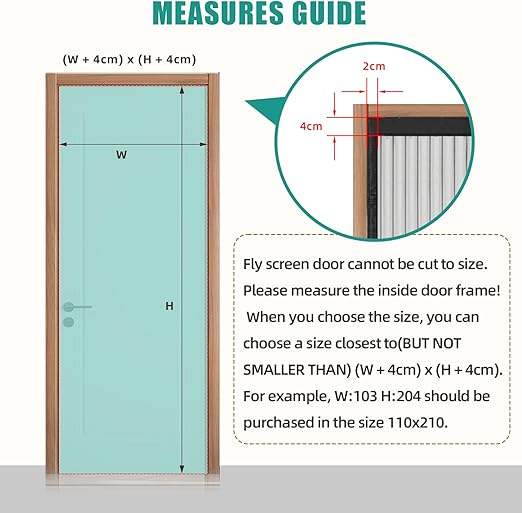 Balkon kapısı sinekliği, 100 x 200 cm (Genişlik x Yükseklik): Sabitli, kayar, metal veya ahşap kapılı sineklik için. 96 x 196 cm’ye kadar iç çerçeveli kapılar için. Lütfen çerçevenin istenen boyutta kesilemeyeceğini dikkate alın. Lütfen çok küçük bir beden seçmeyin.