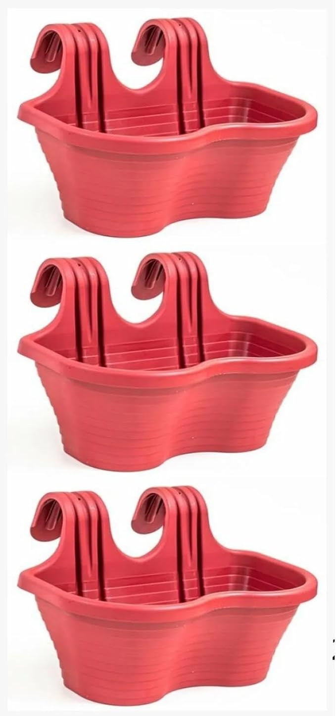 Balkon Saksı, 2 gözlü, 3 Adet, Kırmızı