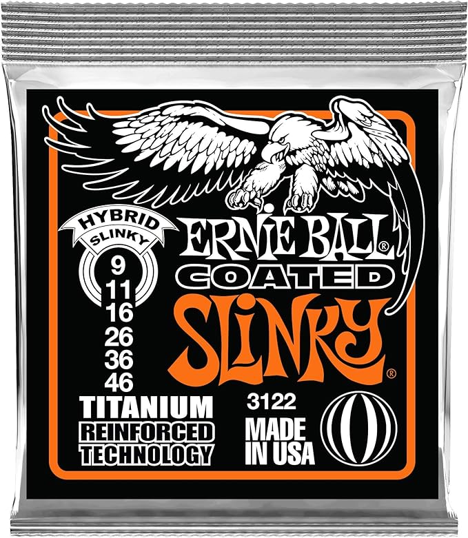 Hybrid Slinky, Regular Slinky’nin alt telleri ile Super Slinky’nin daha yüksek tellerini birleştirerek, radikal gitar geçişleri için oyunculara yüksek tellerde biraz daha az gerilim sağlar.