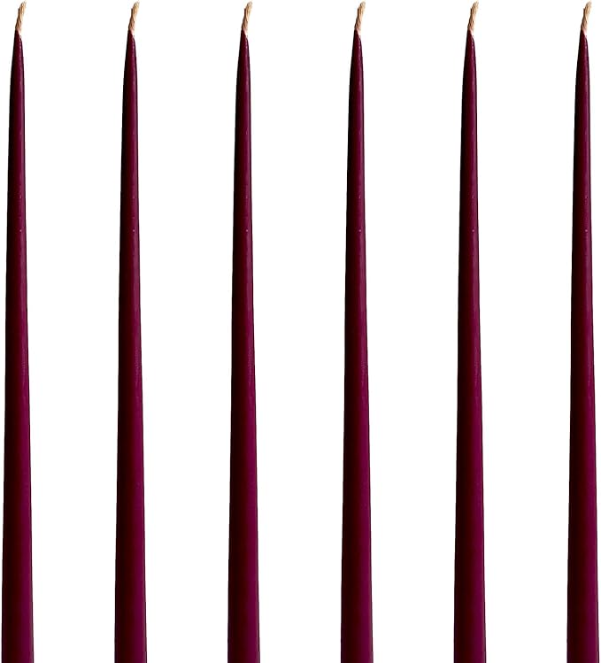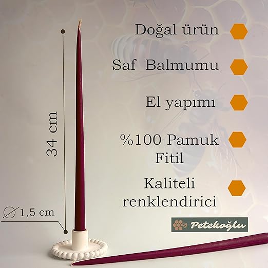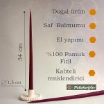Balmumu Mum (6 Adet) 35Cm Konik Şamdan Mumu Doğal Petek Beeswax Candle (Mor)