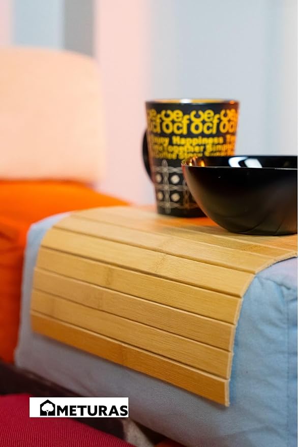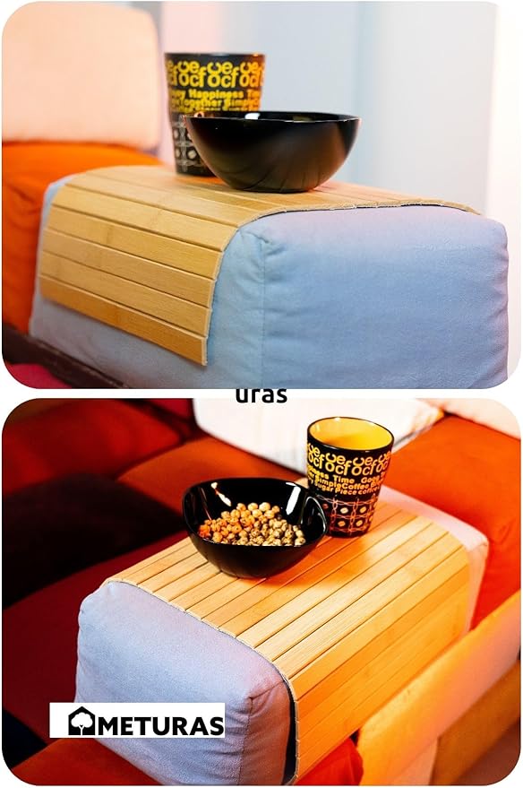 Bambu Dikdörtgen Çok Amaçlı Koltuk Kolçak Üstü Bardaklık ve Tepsi Supla – Doğal Ahşap Bambu 46×32 cm Kolçak Tepsisi – Rahat Kullanım İçin Kaymaz Yüzey Tasarım
