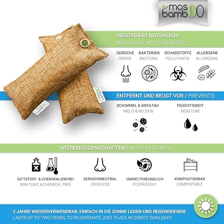 Bambu hava temizleyici Aktif Kömür | doğal Raumerfrischer ve nem alıcı | Geruchsneutralisierer & hava temizleyici Torba Auto, mutfak, banyo, yatak odası, elbise dolabı, buzdolabı için | karşı koku koku maddeleri veya kimyasal içermez | organik koku & koku önleyici oda kokusu, granül-veya alternatif Ozon-temizleyici karşı küf-mahmuz, mantar, bakteri ve formaldehit, kumaş, Sandy Brown, freShoes 2x75g