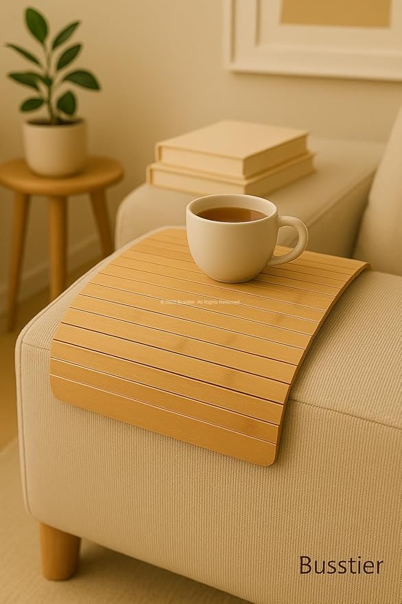 Bambu Katlanabilir Yan Sehpa 40×29 cm, Koltuk ve Kanepe Kenarı Portatif Tepsi, Amerikan Servisi