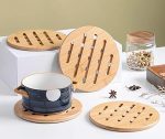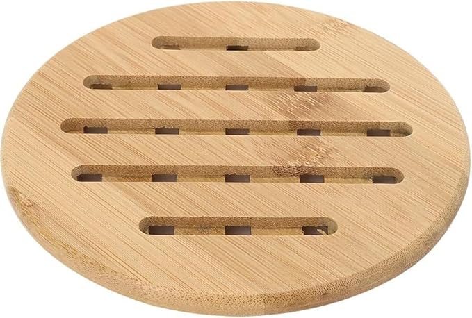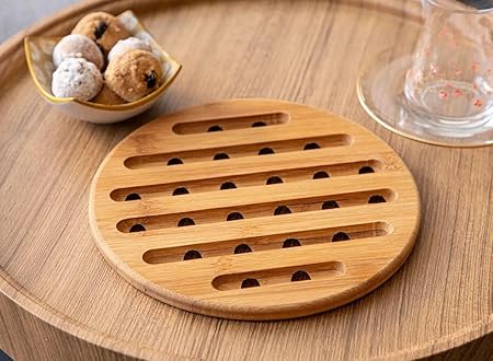 Bambu Nihale Isıya Dayanıklı Ahşap Tencere ve Tava Altlığı Kaymaz Mutfak Servis Ürünü (Yuvarlak)