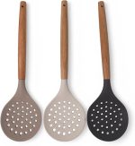 Bambu Saplı Silikon Kevgir, Bambu Uzun Silikon Geniş Kevgir 27cm 3 Renk Seçenekli (SİYAH)