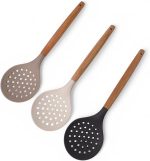 Malzeme: Doğal bambu + gıda sınıfı silikon Uzunluk: 27 cm Kullanım Alanları: Makarna süzme, sebze çıkarma, kızartma gibi sıcak servislerde Renk Seçenekleri: Gri, Mavi, Krem