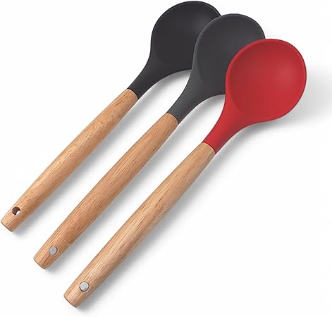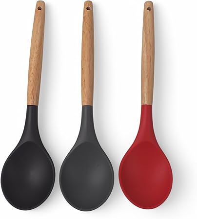 Bambu Saplı Silikon Servis Kaşığı, Bambu Uzun Silikon Servi Kaşığı 28cm 3 Renk Seçenekli, Yemeklerinizi Servis Etmek İçin Silikon Servis Kaşığı (SİYAH)