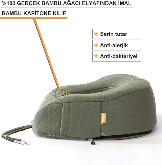 Bambu Serisi | Ortopedik Boyun ve Seyahat Yastığı | Haki Renk