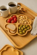 Bambu Sunum Tabağı Çerezlik Doğal Ahşap Şık ve Dayanıklı Sunumluk (Yonca)