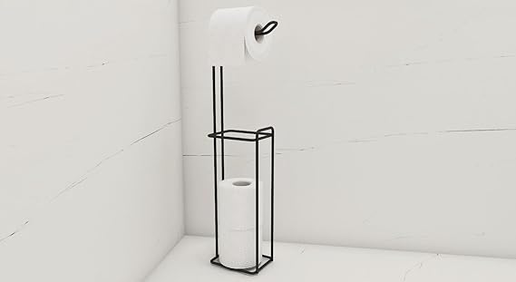 Banyo Dekoratif Siyah Ayaklı Yedekli Tuvalet Kağıtlığı, Şık ve Fonksiyonel Tasarım