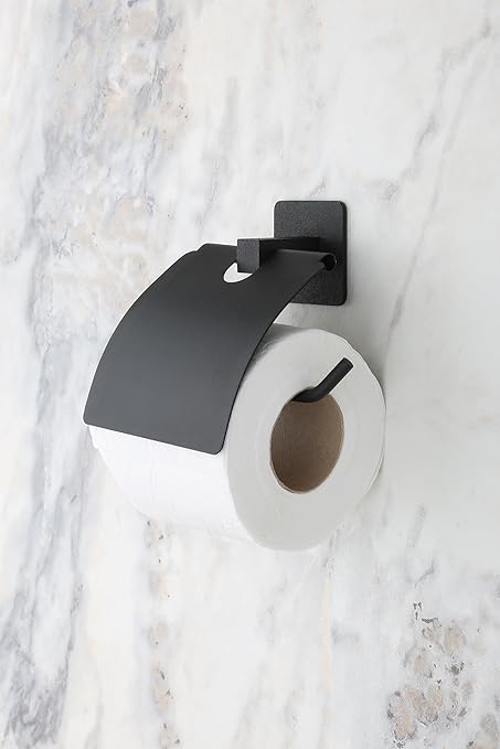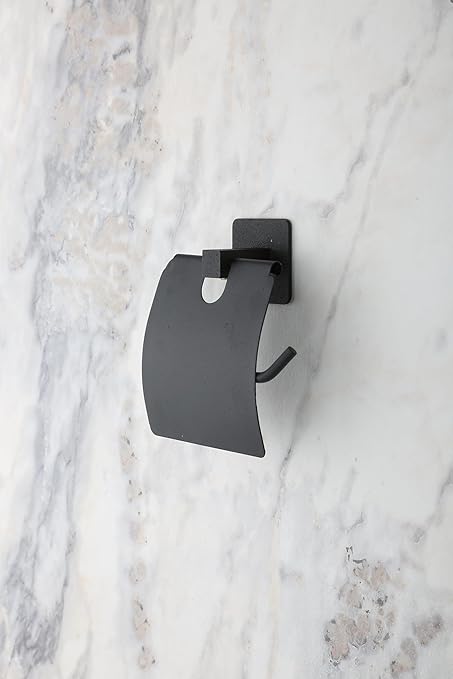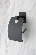 Banyo Kare Siyah Yapışkanlı Kapaklı Tuvalet Kağıtlığı Wc Kağıtlık Tuvalet Kağıdı Askısı