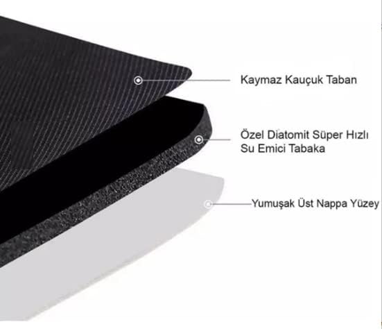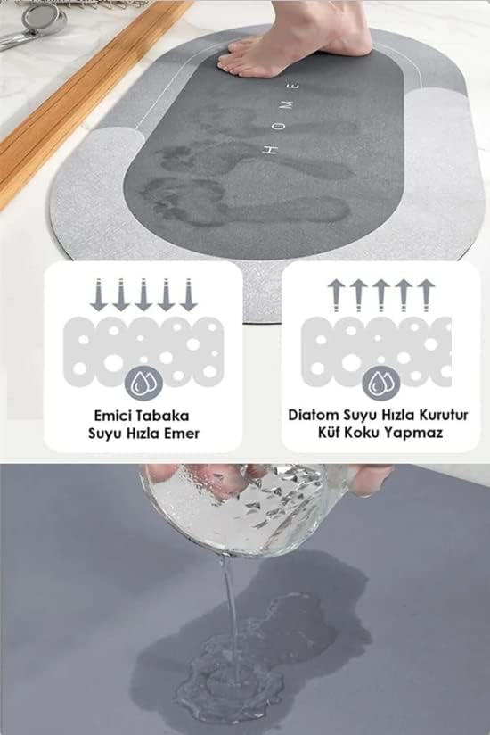 Banyo Paspası Süper Su Emici Kaymaz Tabanlı Paspas Banyo Paspası Oval Diatomit Paspas Süper Emici Paspas Oval (60x39cm) (Gri)